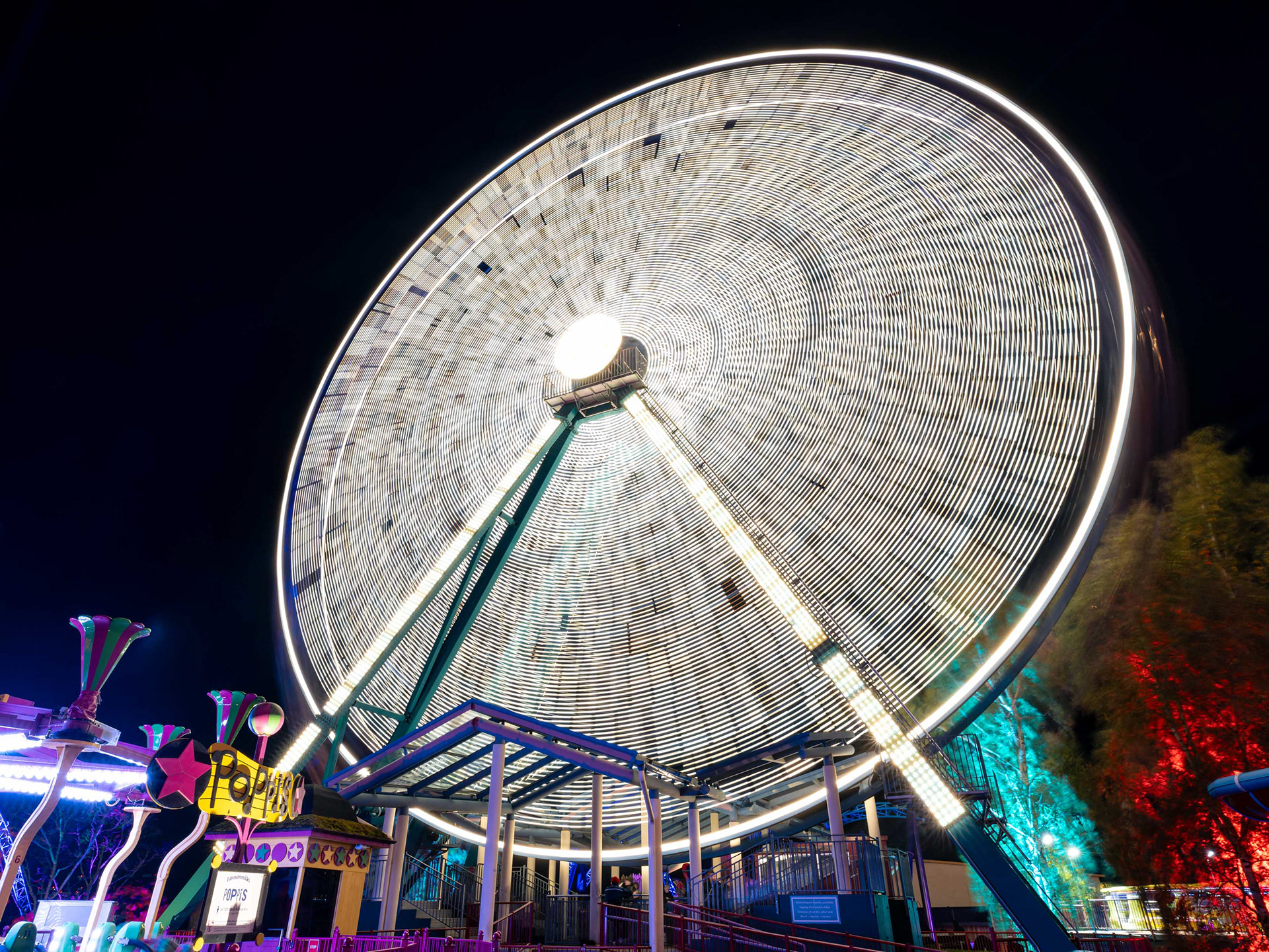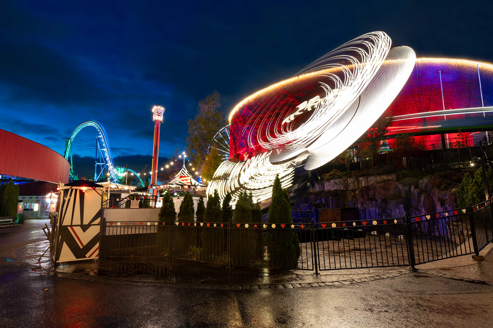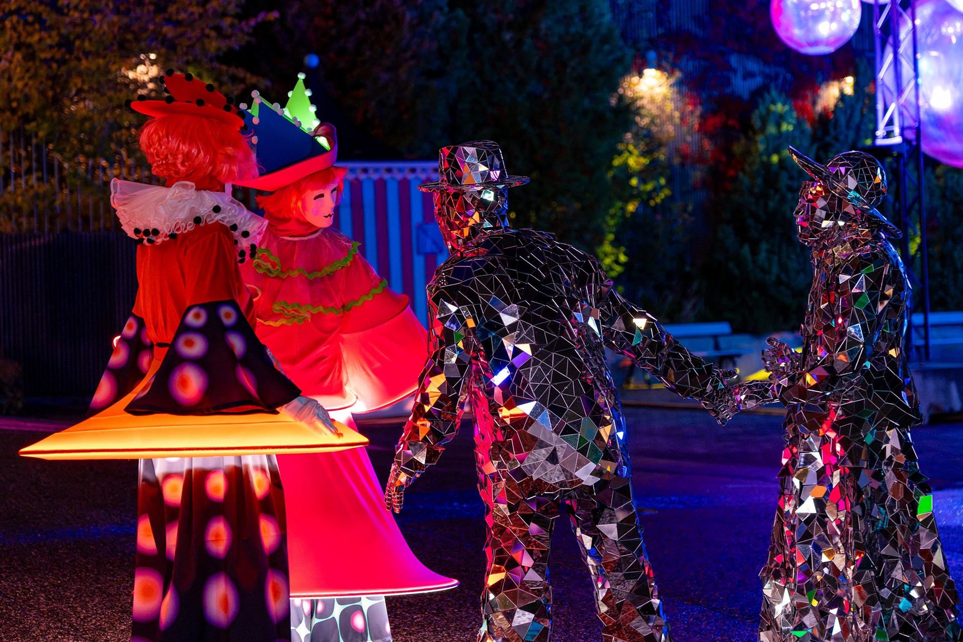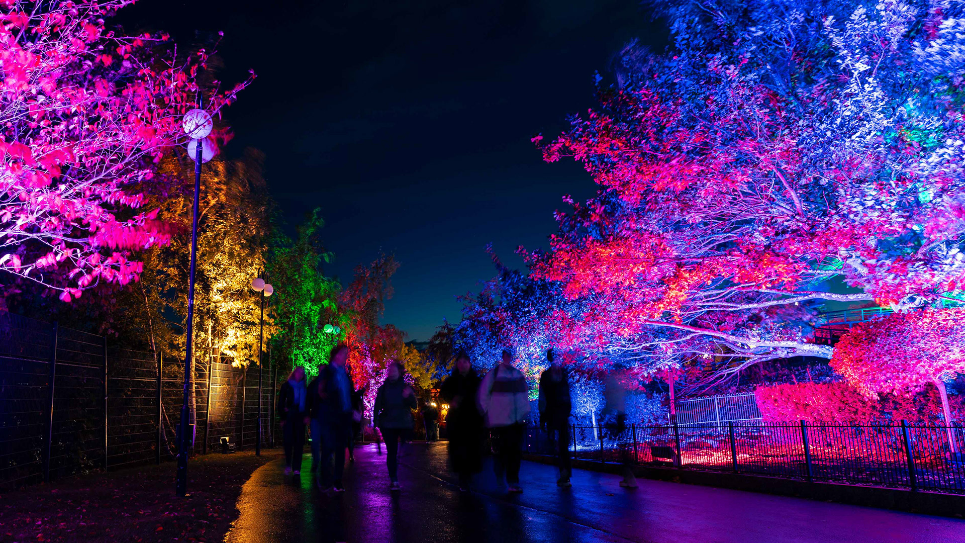 Linnanmäen kauden lopettavat valokarnevaalit toivat värivalojen loistetta pimenevään syysiltaan.