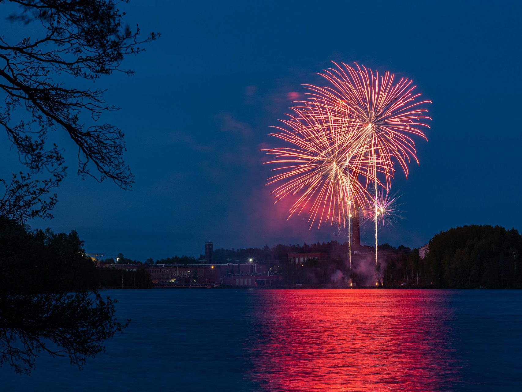 Ilotulitus Kymin vanhalla tehdasalueella